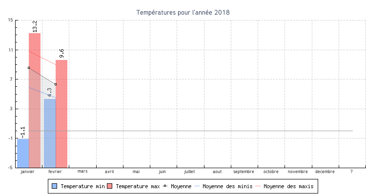 | fevrier | 1.3 C | 4.5 C | 10.7 C | 6.9 C | 6.0 C | N/A km/h | N/A km/h | 90 |